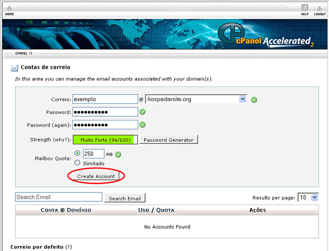 • Embaixo você escolhe uma senha, e a redigita. Você pode clicar no botão gerar senha(password generator) para gerar um senha automatica e segura.